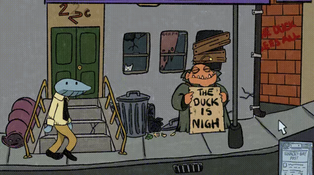 Clam Man is a game built around jokes and a strange, absurd narrative! It has weird characters, tons of puns, and a handful of puzzles; but the focus of the game is definitely dialogue! Examining the world, talking to characters and taking it easy: If that sounds like your thing, this might just be the game for you!