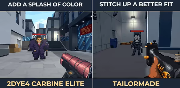 Each fashion crime has a fashion solution, and you'll need to choose between your weapons carefully to fix each fashion faux pas! Each enemy needs something, be it a splash of color or all the seams taken in, so you'll need to switch to and use the right weapons for the right situations! Picking the wrong weapon will do nothing to your enemies, so time to choose wisely!