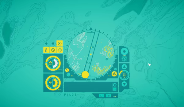 Navigate an elegant, intuitive UI via gamepad or mouse controls. Interpret signals, set headings, and map the ocean through experimentation and intuition.