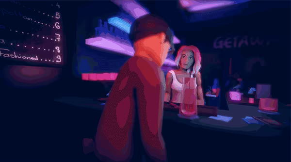 In We should talk, you'll use the sentence spinner to piece together modular sentences in response to the in-game characters. Choose your words carefully to express yourself as you discuss ongoing problems about life and romance with Sam, your in-game partner, over text messages, while also chatting with friends and strangers at your favorite local bar.