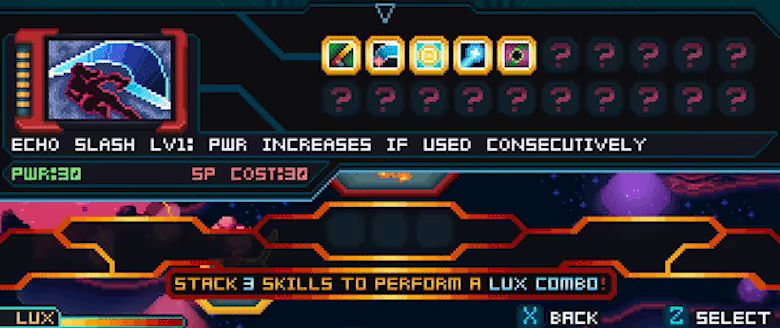 Unleash powerful attacks known as Lux Combo, combining and stacking Active and Support skills to create thousands of possible combos! Once your Lux Meter fills up in battle, you can perform a Lux Combo by choosing ANY 3 Active Skills to Stack together! Stacking 3 of the same Skill usually results in a unique combo, but the most powerful attacks require more specific combinations – all of which can be found through recipe items while exploring the moon!
