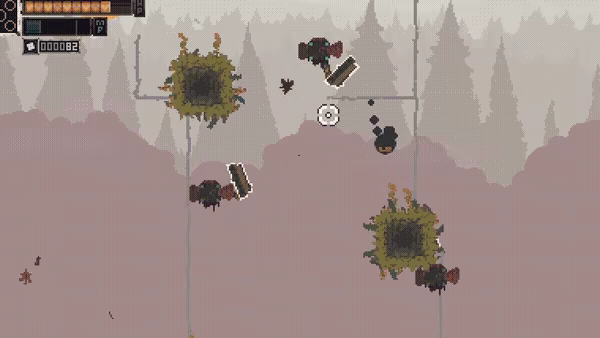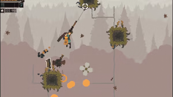 No more aiming in just 8 directions. As a twin-stick shooter, Rusted Moss emphasizes tight and precise gunplay. Quickly switch between your arsenal of weapons to best suit your playstyle and situation. Get up close and personal with a shotgun before grappling away and pulling out a sniper for the killing blow!