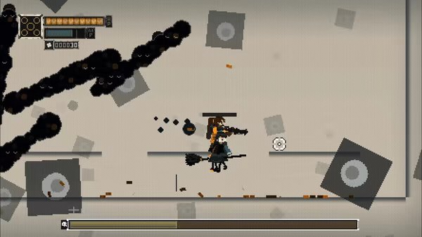 This metroidvania utilizes your grapple and weapons with a full 360° aiming system. The freedom created by these controls creates a smooth experience for users to feel in complete control of their character. Find creative solutions to flexible traversal challenges, and blast away witches and machinery with precise aiming.