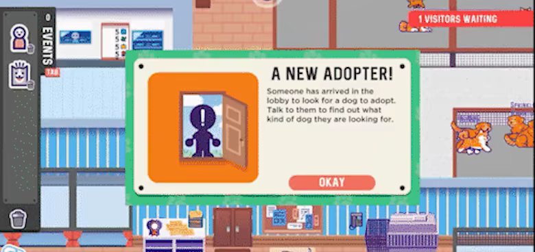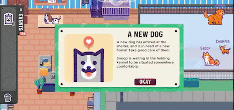 Event-driven story - In To The Rescue!'s main story mode you can progress from housing dogs in your own garage to running a giant, efficient shelter of your own. There will always be events that keep you on your toes, and story threads that develop between them.