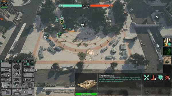 The objective of the gameplay is to win by holding down the most victory points. Alternatively, if your forces are powerful enough, you can completely destroy your enemy’s base and win the match immediately. The command headquarters cannot be rebuilt and the game will be instantly over.